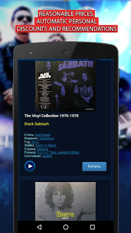 • Ease of navigation and search vinyl records by artists, albums, genres, labels, countries, etc .;