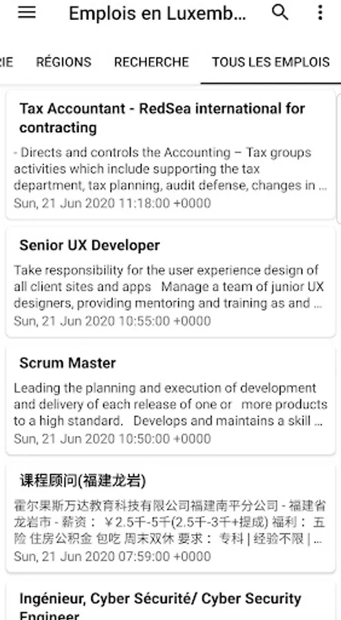 In addition to vacancies in Luxembourg, you can also find places in the rest of the world.