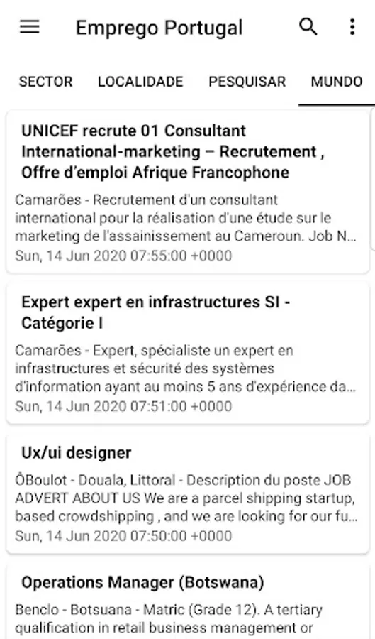 In addition to vacancies in Portugal you can also find vacancies in the rest of the world