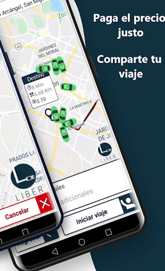 Open the application >> Set your destination >> Check rate >> Press the button to start.