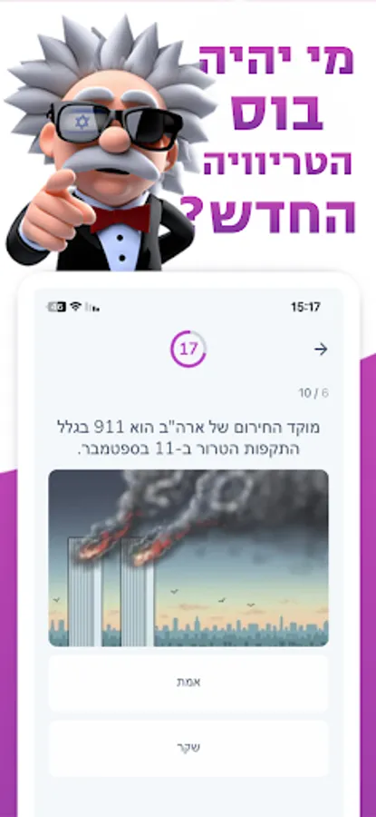 If you recognize yourself as Israel's trivia boss, then don't get excited, enter the Trivia Boss app now and prove that you really are the leader of the game! Accept the challenge, answer the questions, and become the one and only trivia boss!