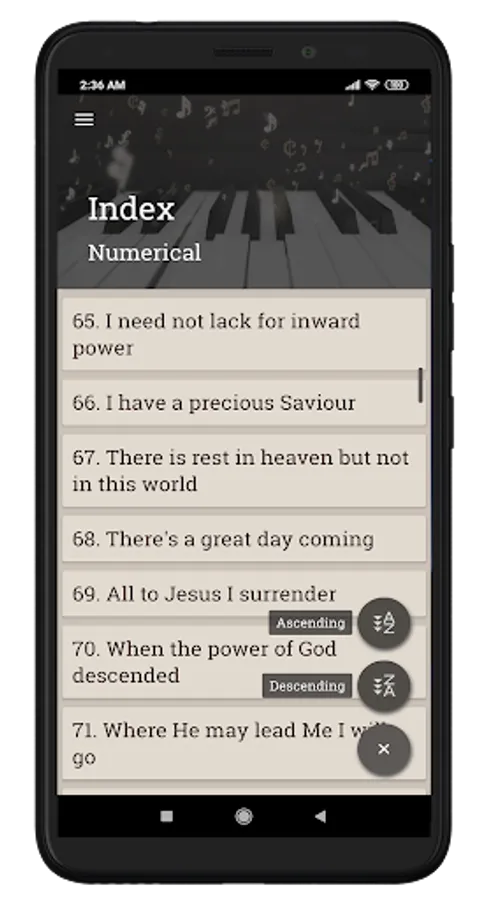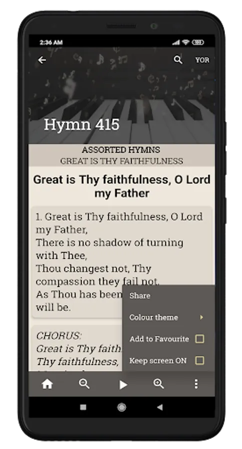 The app's simple and friendly interface allows you easily locate and sing your favourite hymns on the go, right from your phone anytime.