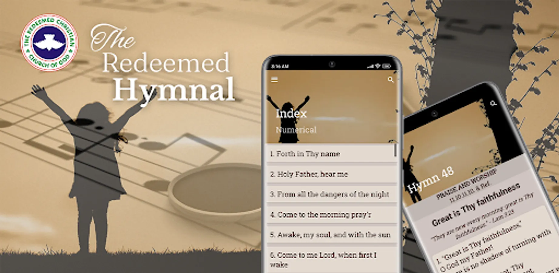 The Redeemed Hymns contain collections of hymns used by the Redeemed Christian Church of God (RCCG) and other christian gatherings.