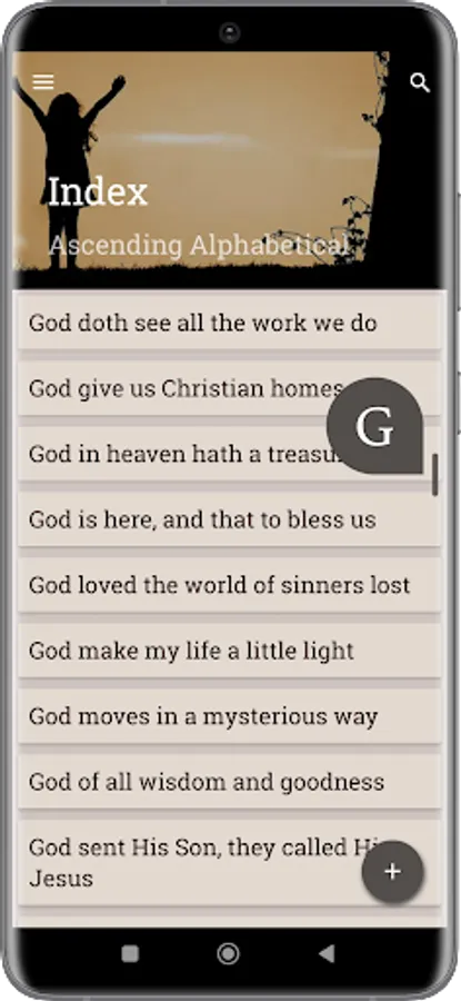 - Recent (Keeps record of your 15 last viewed hymns).