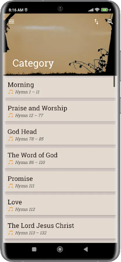 - List hymns by category.