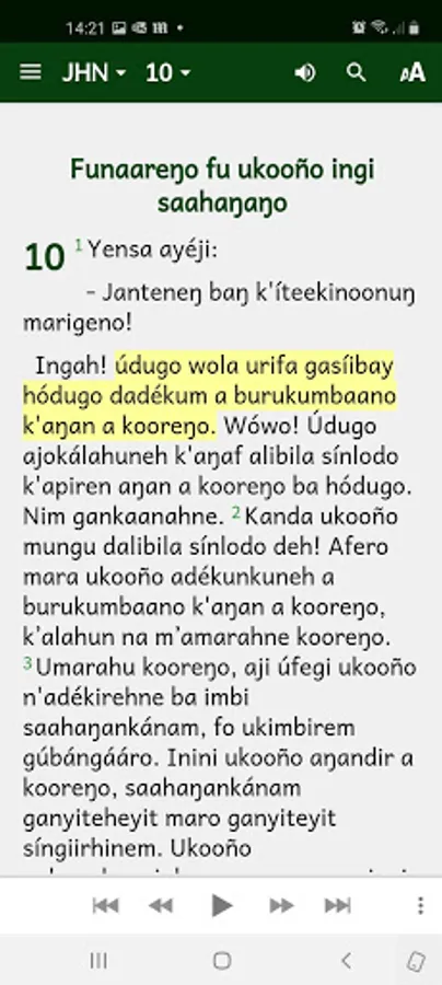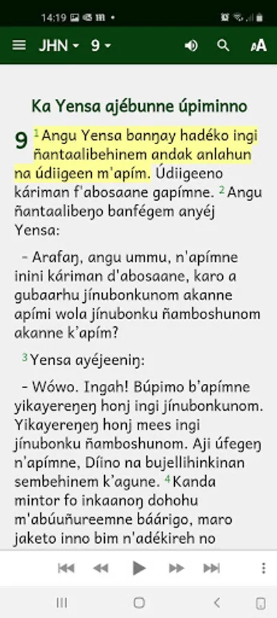 The Gospel of John is part of The Bible translated into the Baynunk Guñaamolo language. With this application you can read and listen to the Gospel of Mark in baynunk guñaamolo.