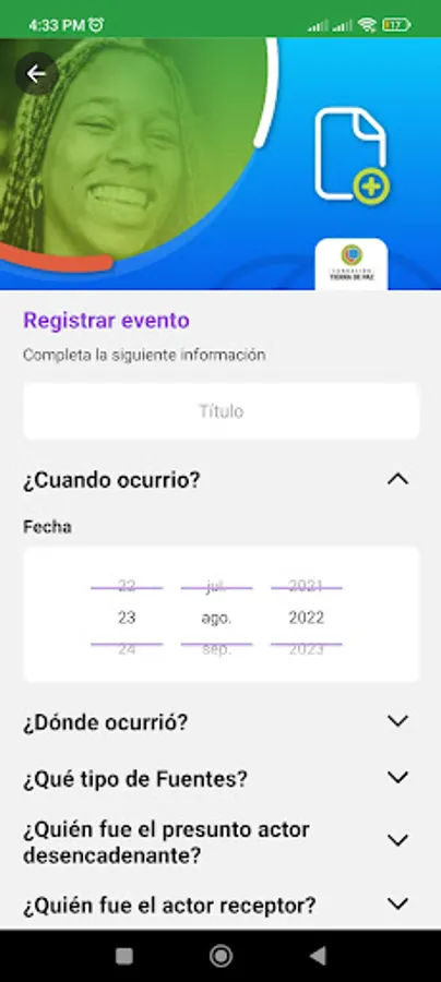 It allows registering events surrounding the armed conflict, in addition to registering educational institutions throughout the department