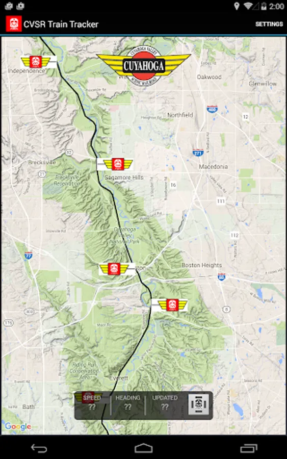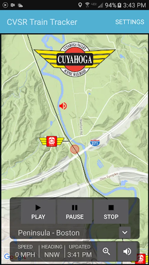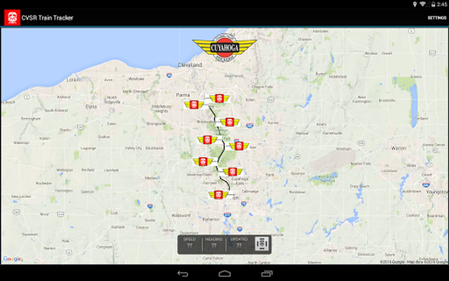 The Cuyahoga Valley Scenic Railroad Train Tracker App allows you to follow the train right on your smartphone! Bike Aboard cyclists can tell where they are and where the train is at any time to determine when and where to board. Display a street map, terrain map, or satellite map of the valley, and zoom in for detail. The app displays the train's current speed, heading, time of the last update, and even allows you to purchase tickets right from your phone.