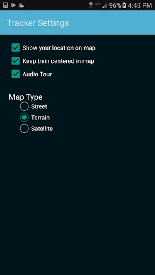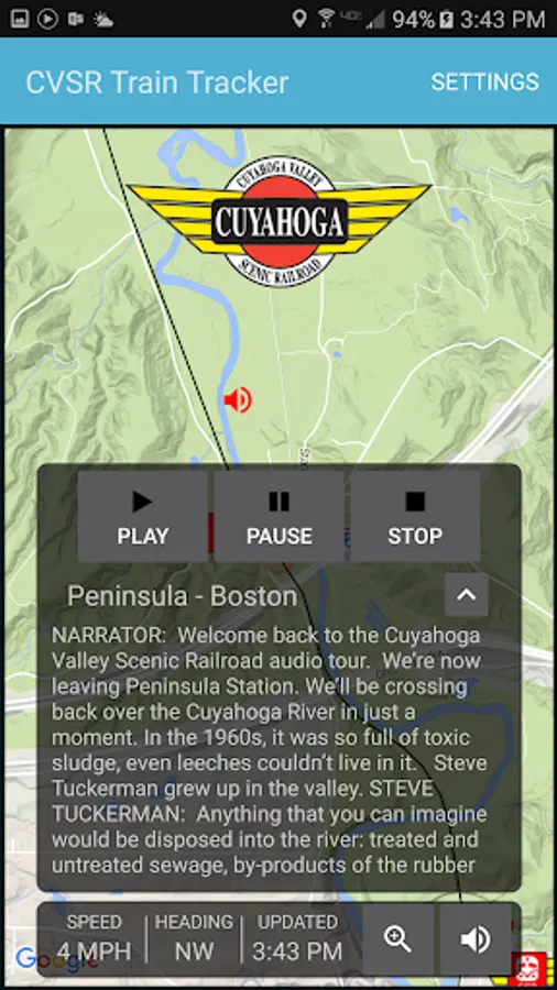 Note- the audio tour uses your phone's internet access to play the clips. Some phones may have limited coverage in some areas of the park. Your battery will be exhausted faster if you have the audio tour turned on. To turn off the audio tour for the current session, click the speaker icon on the Train Tracker page. Or go to Settings to turn it off for all sessions.