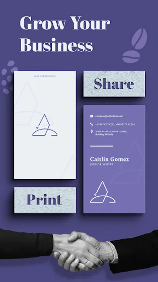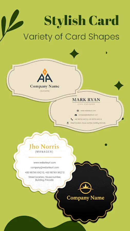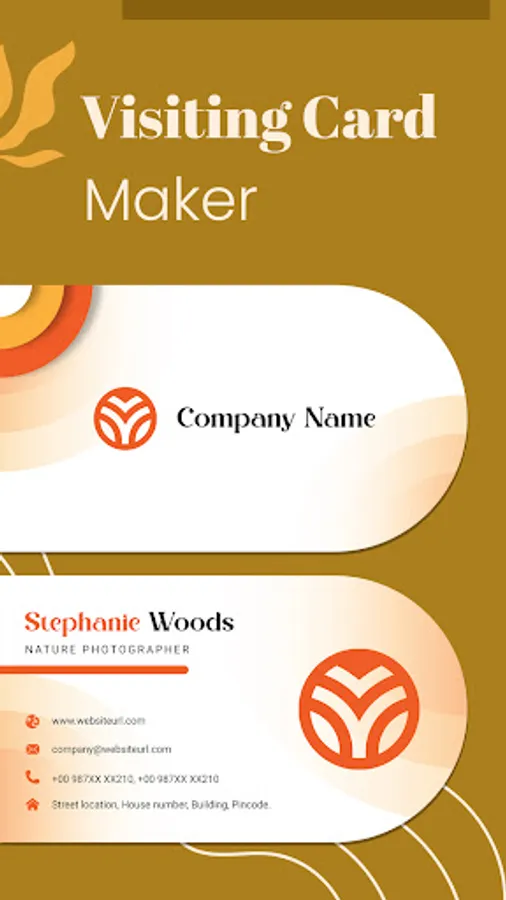 Create customized visiting card designs and decorate them with your photo, logo, background, text, and stickers. By using this app you can make your own visiting card in minutes.