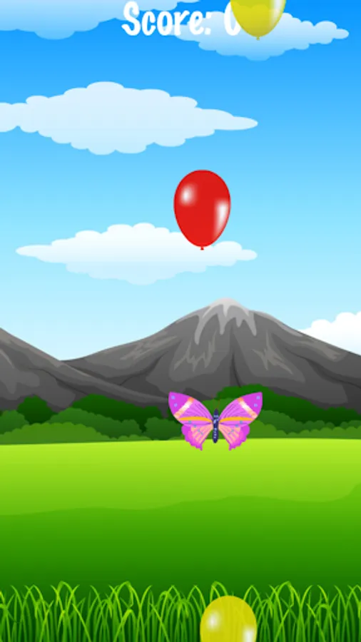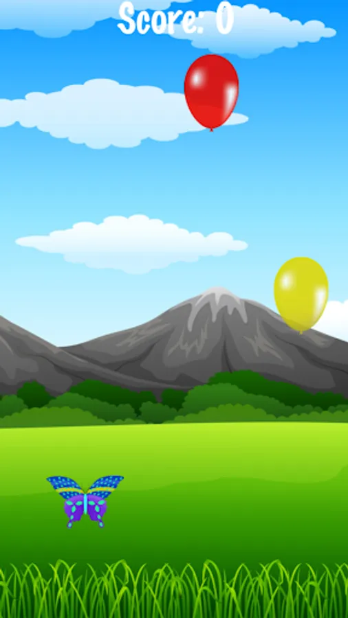 4. Balloons / butterfiles are originated from bottom at random positions and traverse through the screen to the top of it.