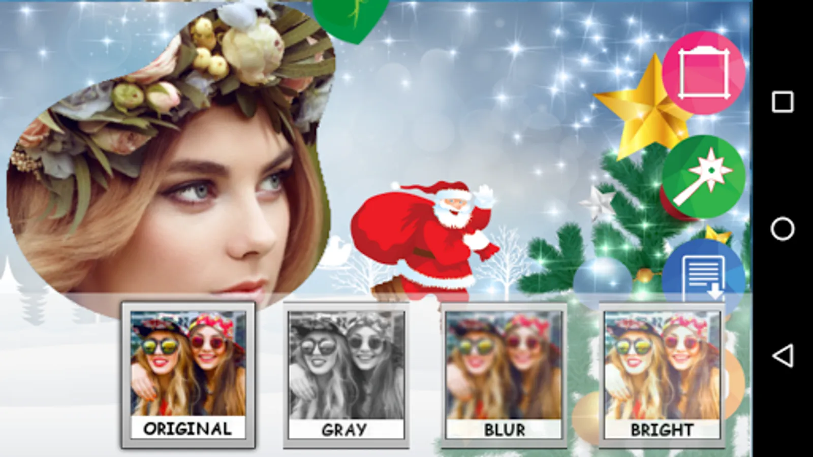 This application provides you with an amazing set of Christmas and new year frames. It lets you host a photograph of your choice on to these frames and also lets you apply a few effects on a selected photograph.
