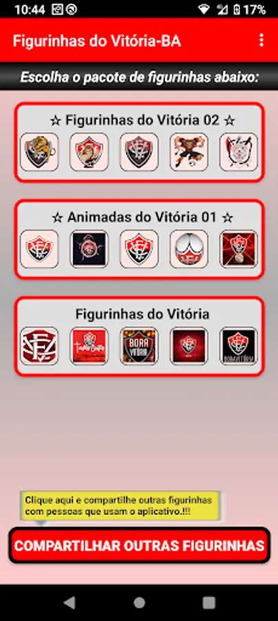 ** All stickers are online, you need to download each pack to add to WhatsApp. This makes the application lighter and more stable.