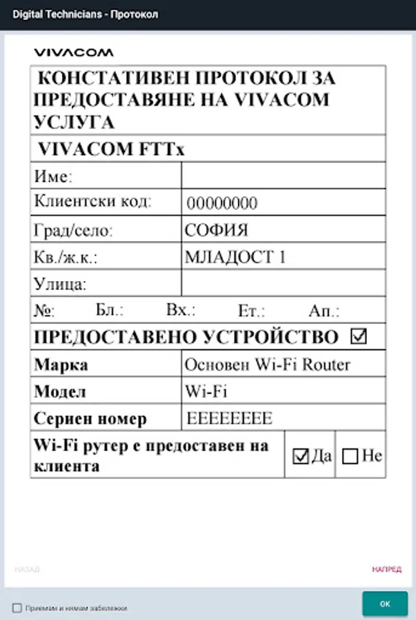 Digital Technicians is a mobile application for generating an electronic statement of findings when providing services to Vivacom and troubleshooting.