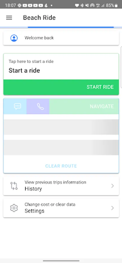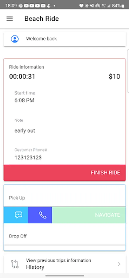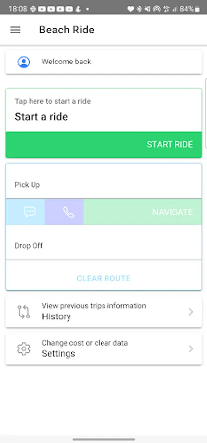 The user can also add Notes to their rides. When a ride is completed total time and cost based on user settings is displayed. Completed rides are easily reviewed in History.