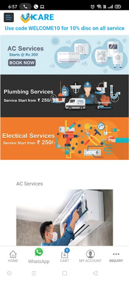 VKARE SERVICES is a Surat based Indian Company. We offer services like AC Services, Electrical Repairs and Plumbing services. We also offer AMC of AC / Electrical / Plumbing for commercial shops & Industries for all brands Split AC, Window AC, VRF Package AC, Cassette AC, Ductable AC etc. We have certified technician staff to meet all your service and repair needs at a click of a button. We are staffed with young, passionate people working tirelessly to make your life easier by catering to your service and repair needs at your doorstep. We thank you for your trust and hope you have a seamless experience.