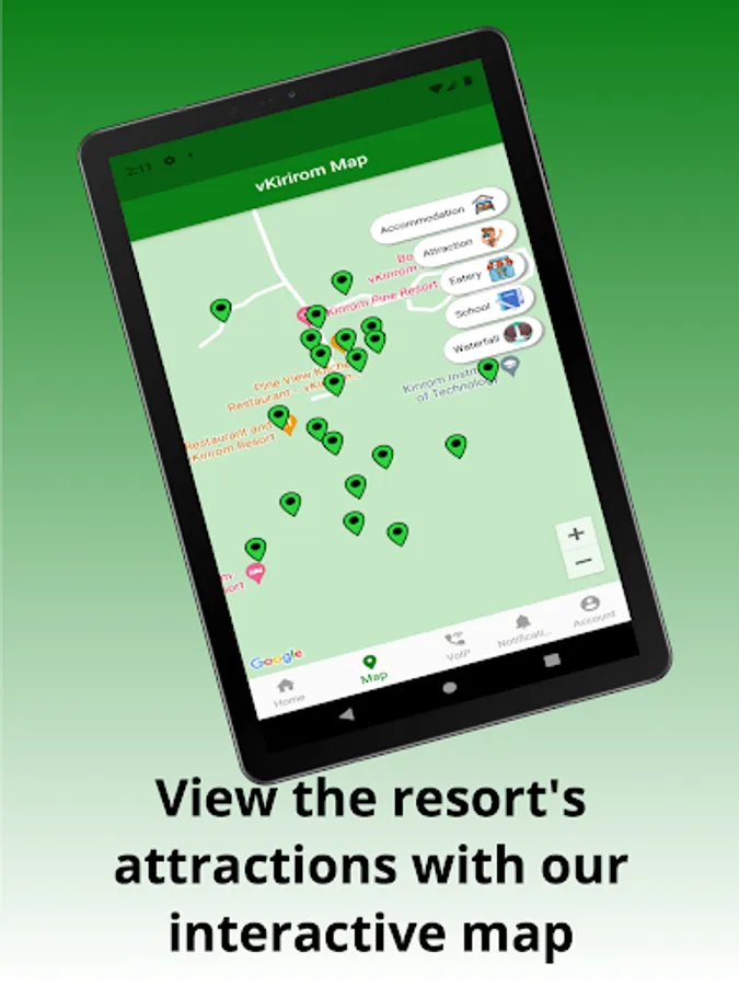 • Access offline digitalize map around vKirrom area for free.