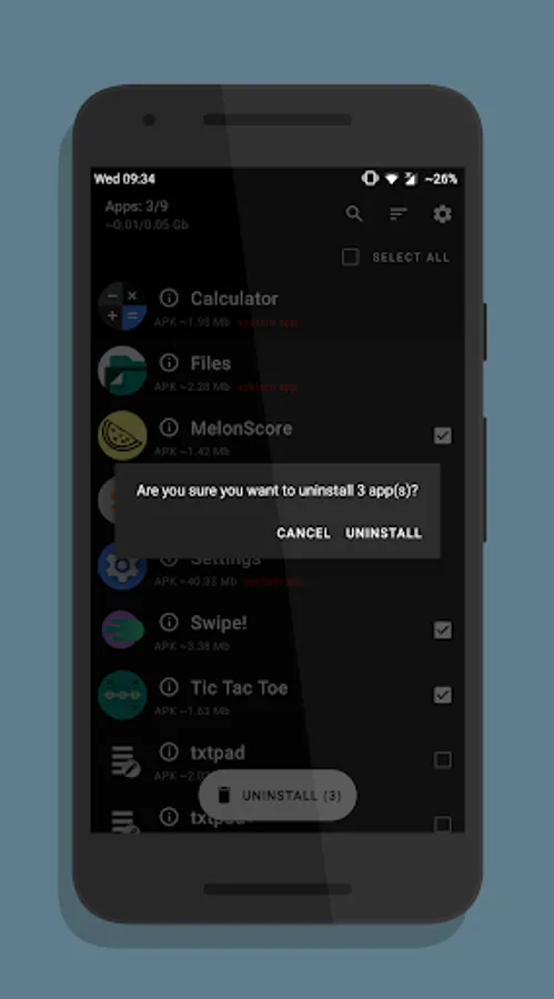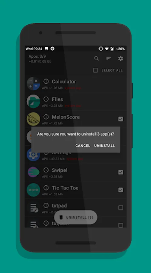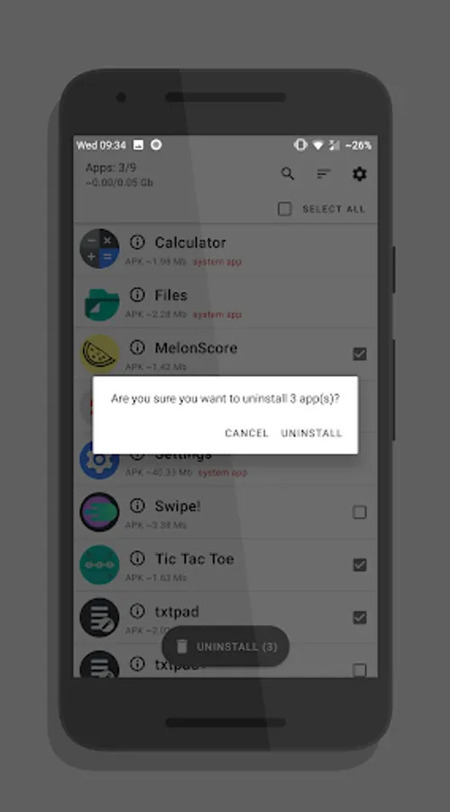 UnApp — it's an app that allows you to select multiple apps to remove them from your phone or tablet and free up memory space. You can select multiple apps and uninstall them from your phone. It will be faster than uninstall them one by one. Also, UnApp shows info for each app.