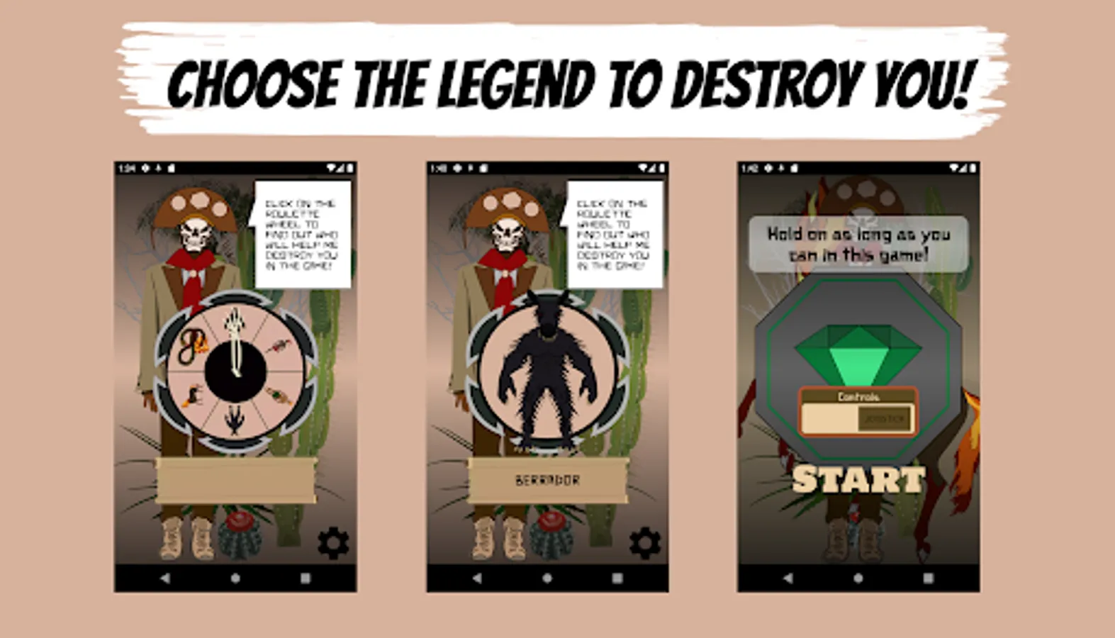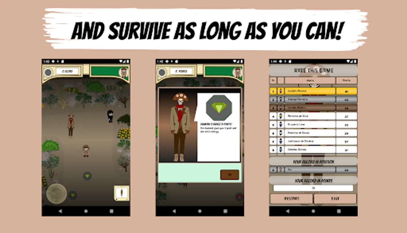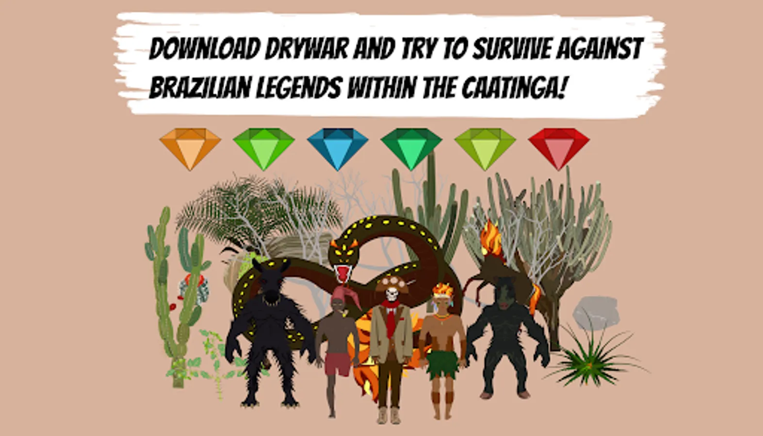 In this game you'll have to find the cangaceiro at the beginning (a bandit from the last century who lived in northeastern Brazil) and he'll draw with a roulette wheel which legend you'll have to escape when starting the game. After being teleported to the middle of the Caatinga (White Forest) you will have to survive the cangaceiro and the chosen legend. A detail that brings more fun is that you'll have to compete with 11 more virtual players for which collects more badges before being destroyed by the cangaceiro and the legends. When destroyed, a table with the ranking of the 12 players will be displayed. The score is measured by the amount of badges collected and there are 6 types of them. Good luck! And try to score higher than other players!