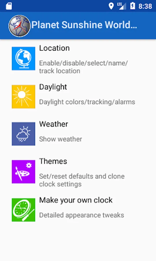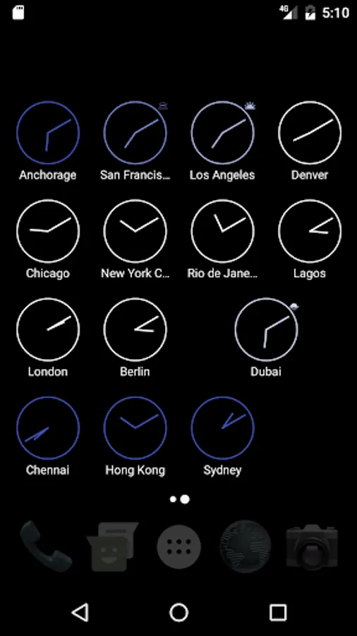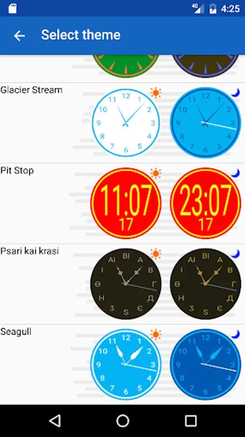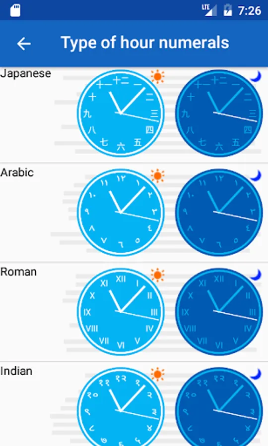 ☆ Appearance of each clock is separate and highly customizable so you can change the types of hands, of hour marks and numerals, colors of everything and the way the daylight is tracked. All of it can be memorized as named themes.
