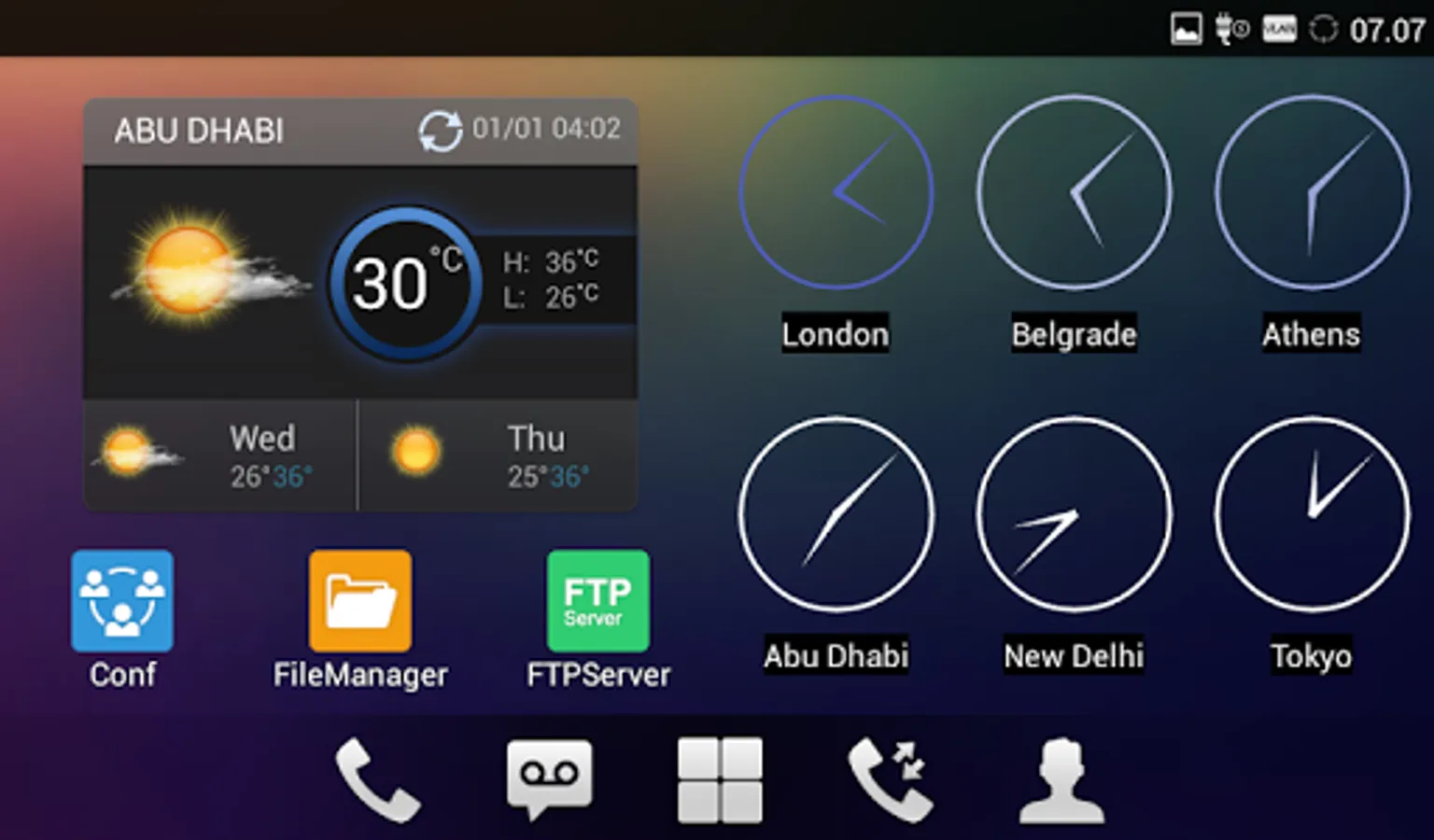 Wouldn't it be about time to finally have an elegantly looking set of clocks at your desktop, on your office VOIP phone, tablet or TV, that show the time at places of your life's interest and that change their colors with the sun at the location of each clock? And how about not having just 2 or 4 but practically an unlimited number of clocks, of any size you like, to cover all places where you have someone you need or you care about? And how about an unobtrusive normal analog clock instead of 1980s style LED-like displays? And it would be nice if it also does not tax its features on your battery budget?
