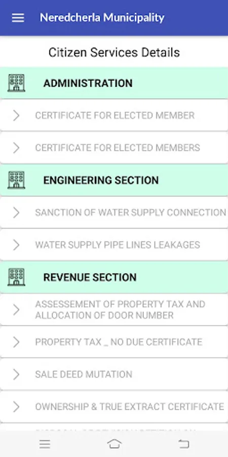 Citizen Buddy Citizen Services Mobile app for Neredcherla Municipality Citizens. Citizens can Know and pay their Property Tax, Water Tax can also Register complaints, Grievances and get them resolved. App also works as bridge between Citizens of Town and Urban Local Body App is developed under the guidance of Commissioner and Director for Municipal Administration (CDMA), Telangana State