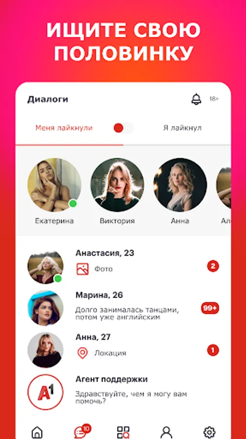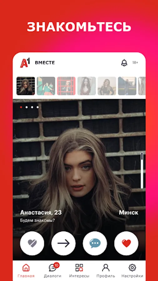 Browse photos of other users of the “Together!” Dating service, put “likes” and get “likes” in response. If your sympathies with a girl or boyfriend coincide, you will form a couple. Start a conversation, maybe it promises a new acquaintance and gives an occasion for a date.