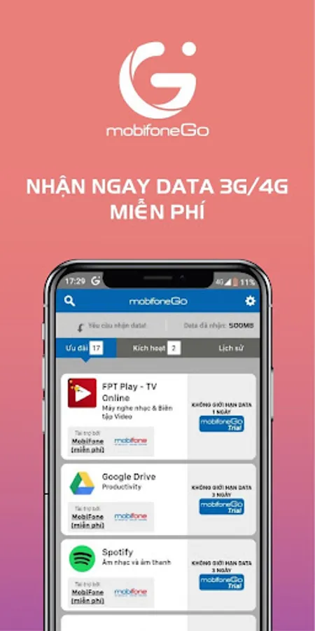 ⇒ Free offer are updated very often. Once you download and activate mobifoneGo, you can claim the free offer.