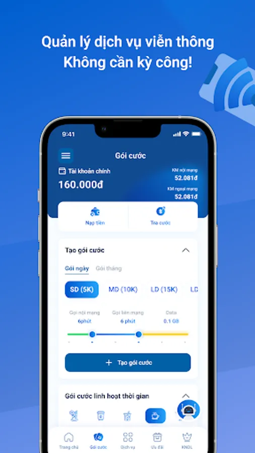 - Đăng ký gói cước & dịch vụ nhanh chóng, thuận tiện