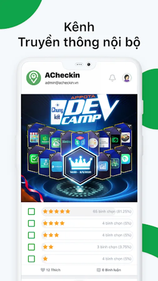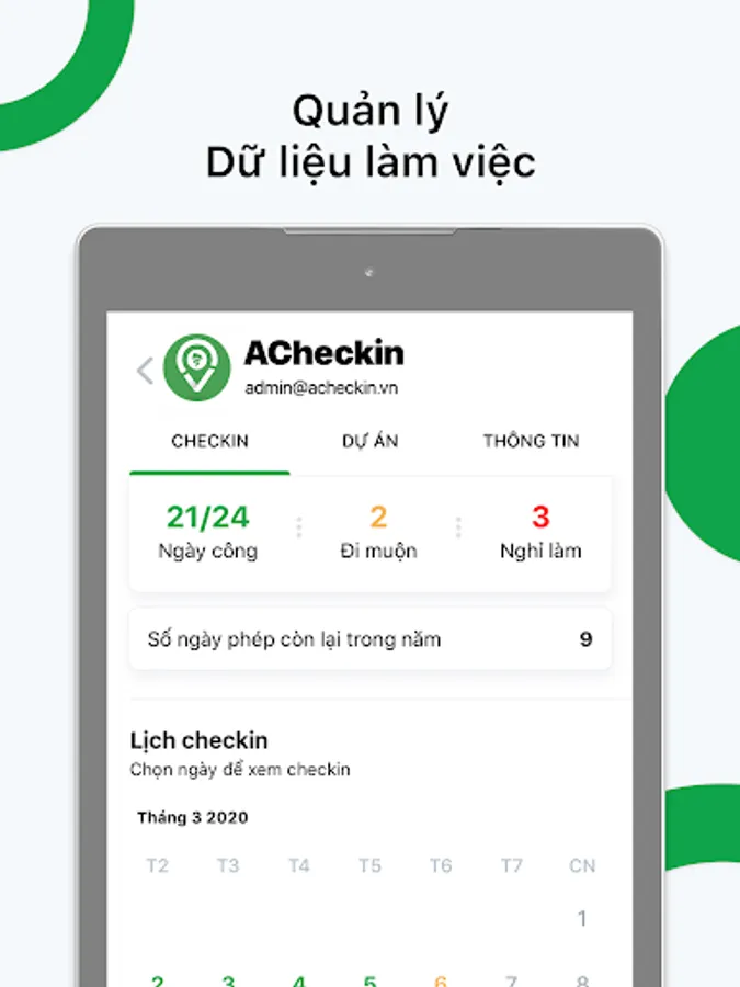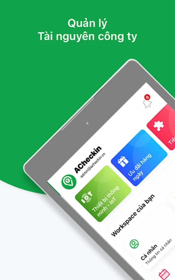 ACheckin is a platform providing solutions to increase efficiency and reduce management costs of resources and personnel of the business. ACheckin supports timekeeping, checkin , counting of workdays ... All done online and easily on Android, iOS, PC, Web / CMS platforms.