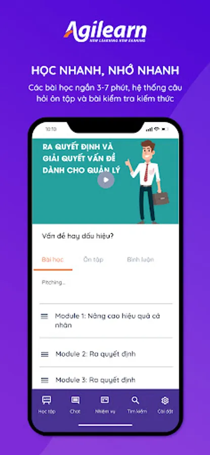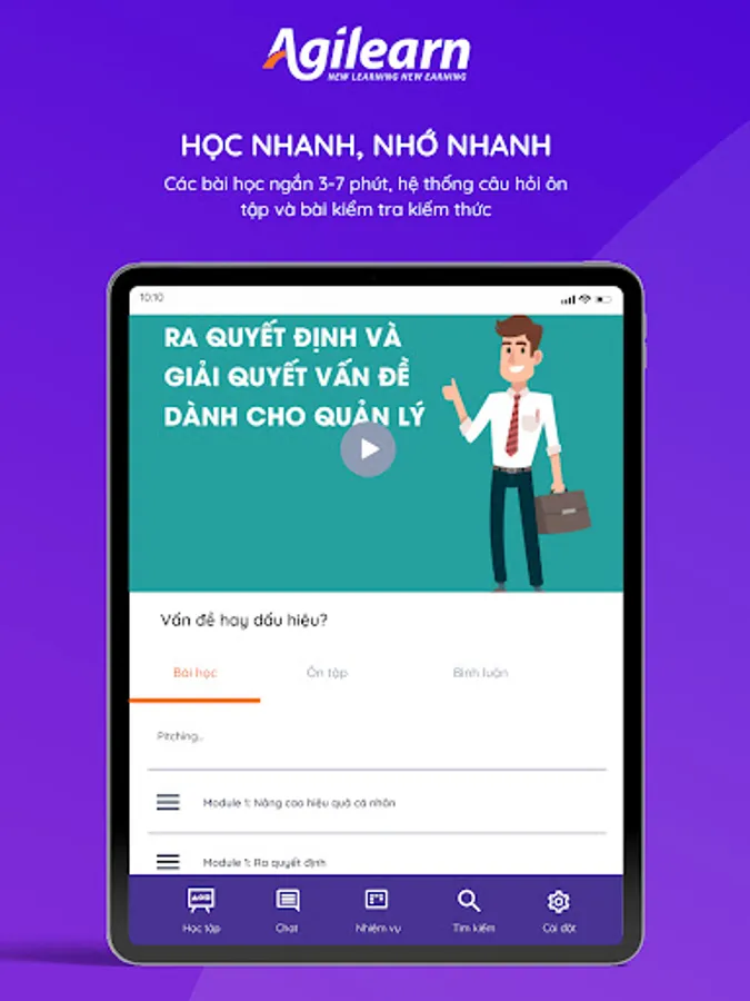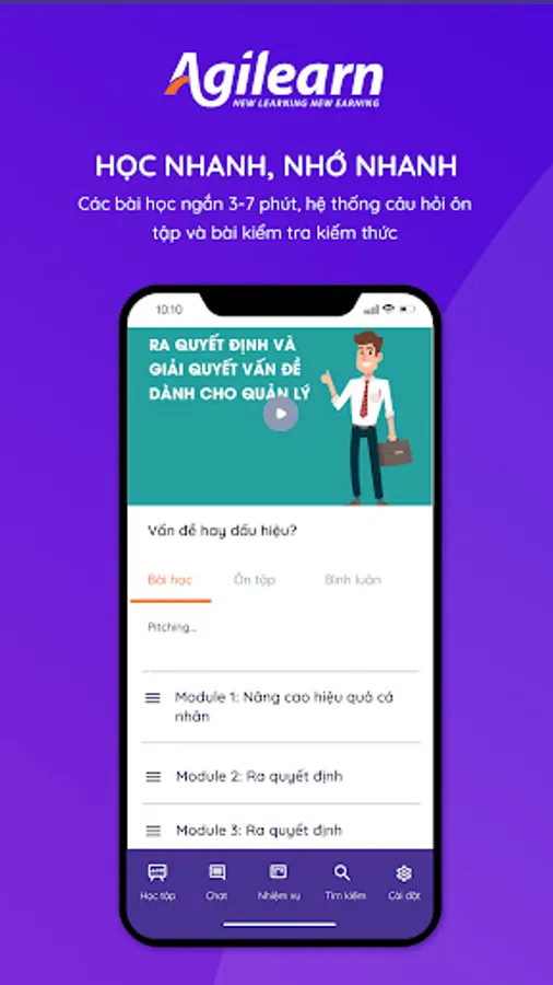 Agilearn digital training solutions help businesses improve their competitiveness through developing human factors and effective working processes. Agilearn's solution ensures 3 factors: diverse topics and meets all learners, helping businesses optimize training costs and save time in organization, monitoring progress and results.