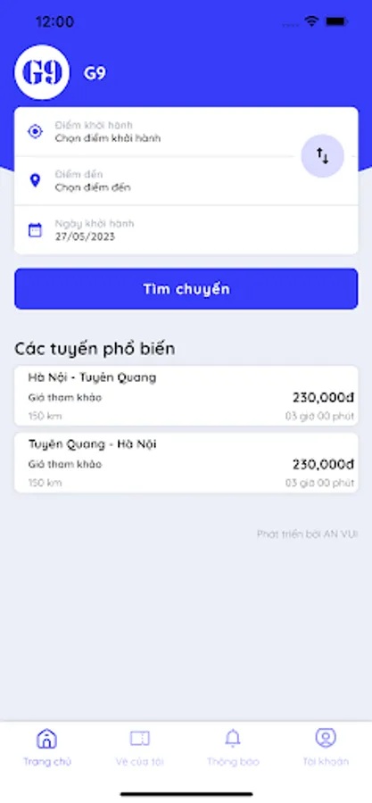 G9 là một dịch vụ vận tải kết hợp từ xe 5 chỗ đến xe 16 chỗ hoạt động trên cung đường Hà Nội - Tuyên Quang theo mô hình xe kết hợp. Ghép khách, xe chạy hợp đồng du lịch... Hành khách có thể tải App G9 để thực hiện việc đặt xe trên cung đường Hà Nội - Tuyên Quang nhanh chóng và tiện lợi