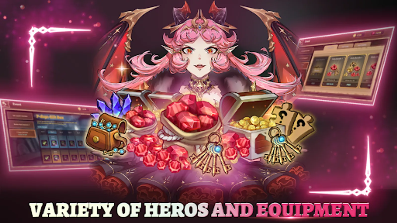 ⚡ HEROES - Rich heroes system such as: Adrius, Evelyn, Galidus, Florence, Eidra, ... with powerful skills to help you protect the defense, increase the strength of the army and win.