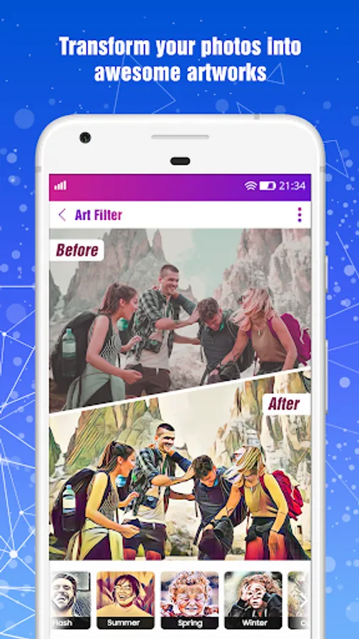 Art Filters - Art Photo Editor is a powerful photo editor with many amazing effects and filters! Art Filters - Art Photo Editor has everything you need to make every picture awesome. It makes your photos beautiful with easy and powerful editing tools. Art Filters - Art Photo Editor is an effective photo editor with some stunning photo effects and various photo editing options.