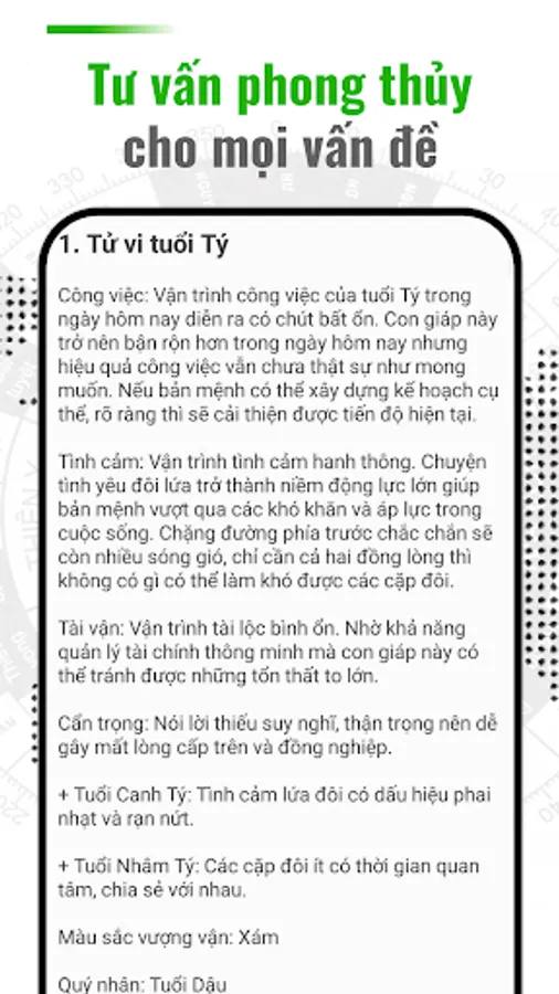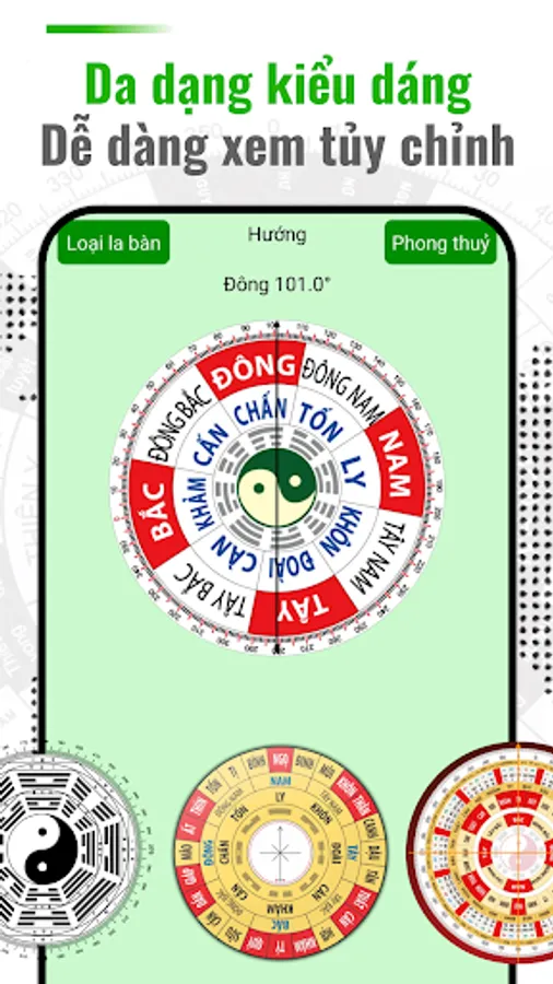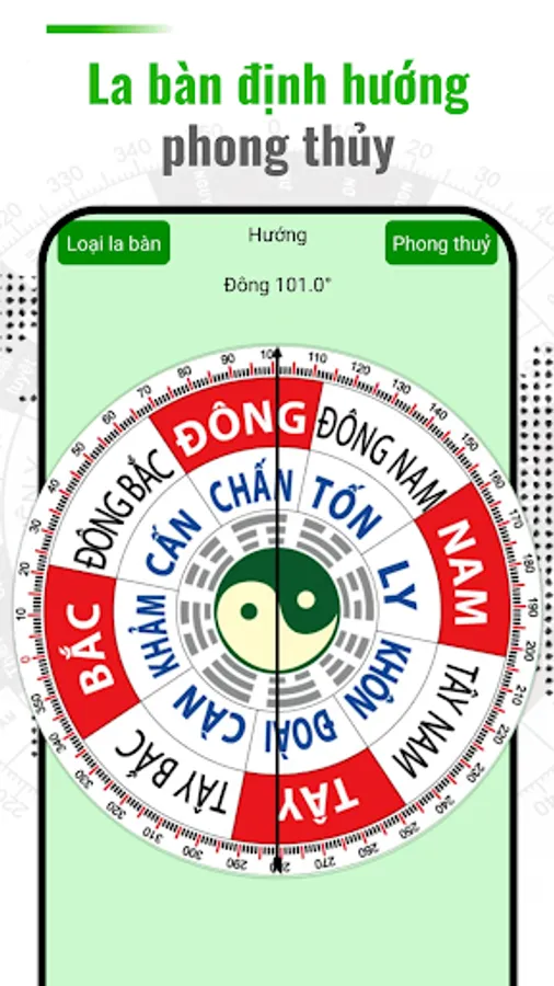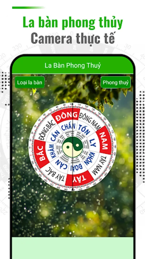 The feng shui compass automatically rotates according to the position and orientation of your phone to be able to see the direction of the house, the direction of the door, the direction of the kitchen, your destiny, helping to arrange the construction work, arrange the layout in a funny way. most harmonious.