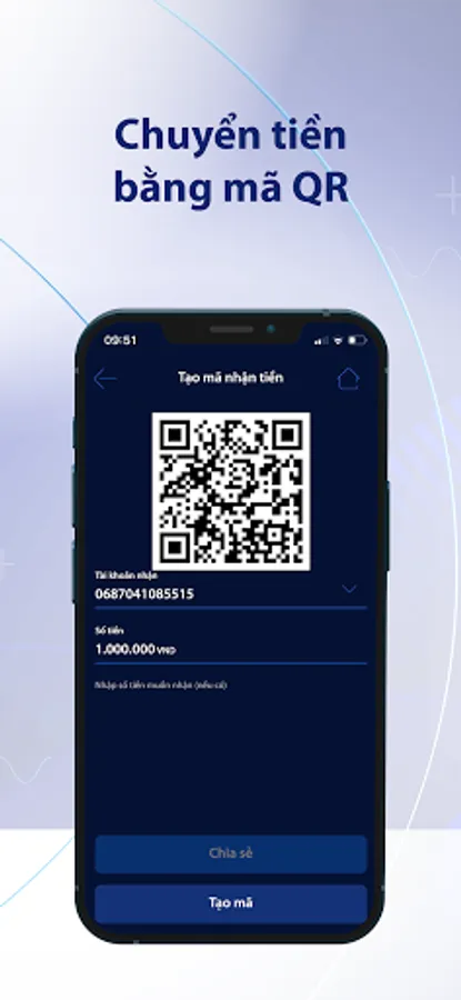 - Seamless transfer process, including transfer to another account by using account number/card number/phone number, the nickname of the account owner, and VietQR code