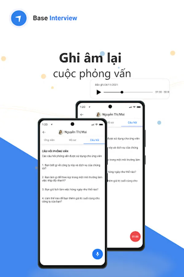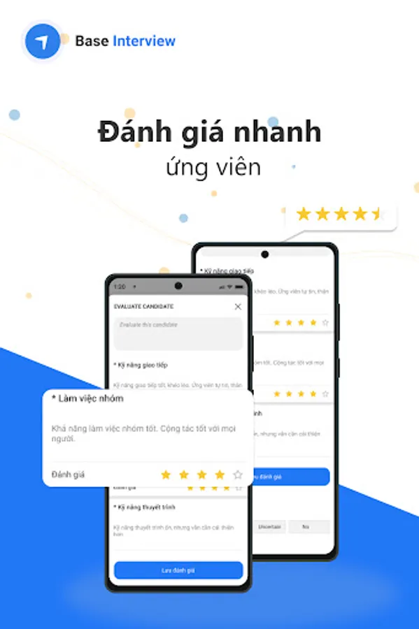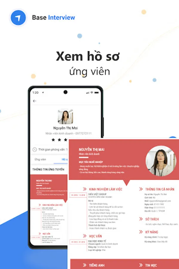 Base Interview allows users to view the list of interviews in charge, receive notifications about upcoming interviews, view candidates' CV, evaluate candidates, ... to arrange work, prepare information. News records the results of an interview in the most efficient, fast and transparent way.
