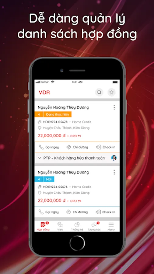 4. Fully and in detail support the process of recording debt collection results on each contract and synchronizing data and information to the server directly.