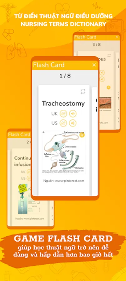 - Game Flash card: Save looked up words and learn extremely useful terms.