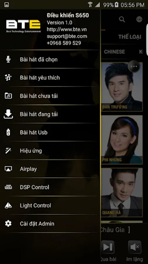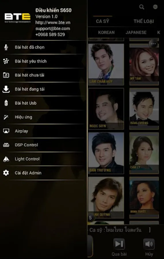 Control applications for the first own Karaoke BTE S650, version used for both phones and tablets