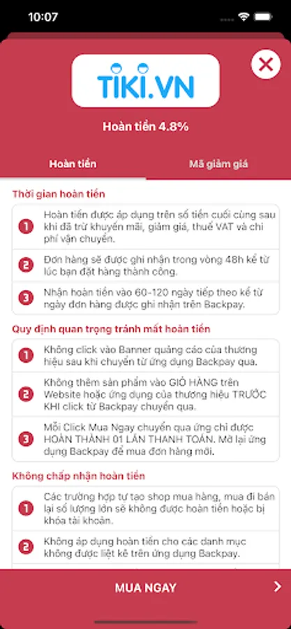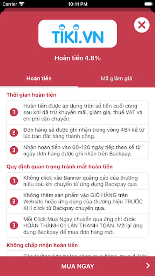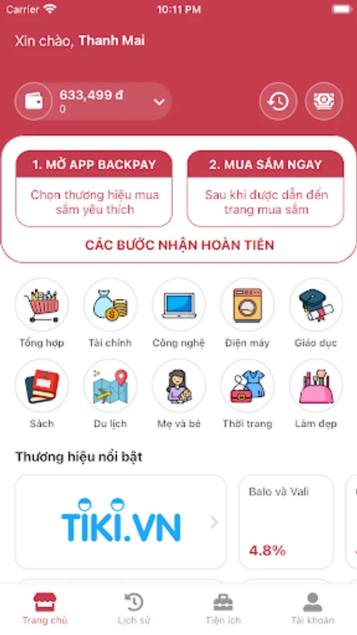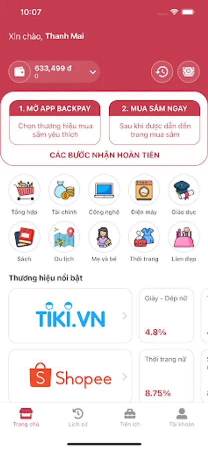 BackPay is an application that helps you refund up to 60% every time you shop or use services at 50+ brands: Shopee, Tiki, Sendo, Lazada, Trip, Booking...