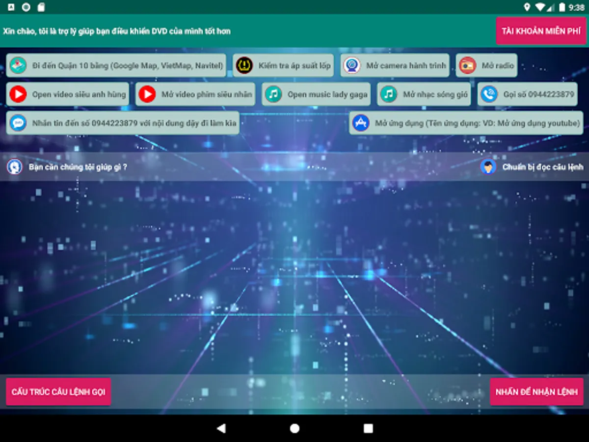 CoDev Voice Control is a software that makes voice commands entirely in Vietnamese, can make calls, text messages, select songs, open videos, open movies, navigate with google maps, vietmap, navitel, open all applications. Use only one command.