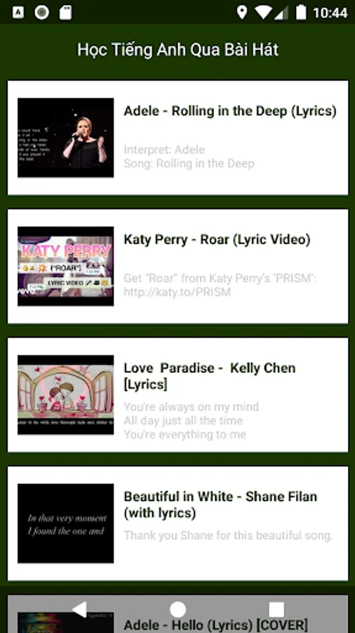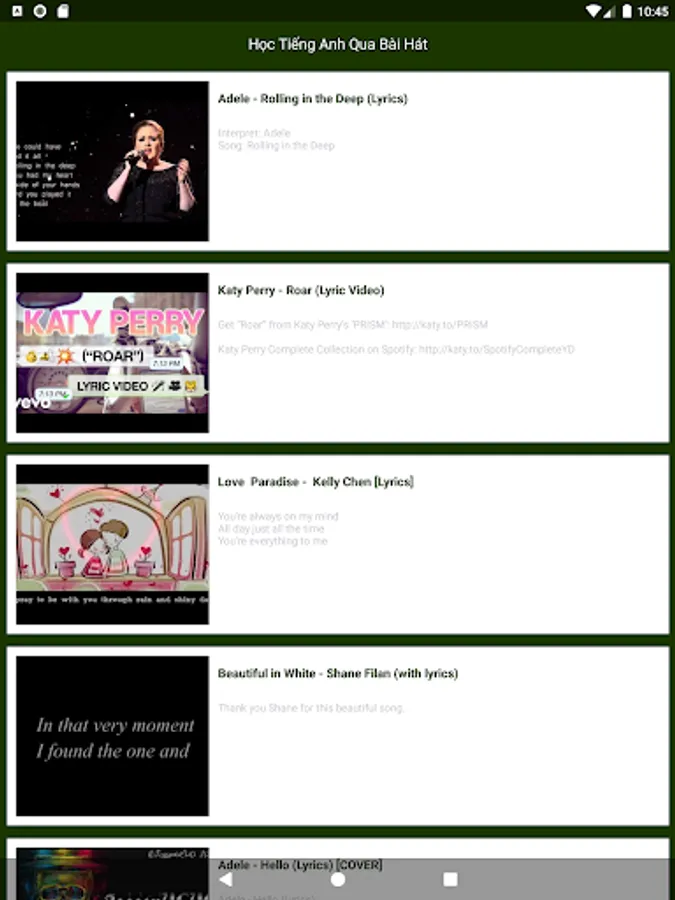 Collection of easy-to-listen and easy-to-learn English songs. Help you practice listening.