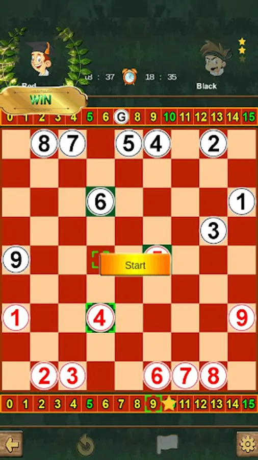 * Arrange square by 4 pieces at 4 vertices. The chess pieces consist of red and black pieces forming consecutive numbers, read in either reverse order or counterclockwise rotation.