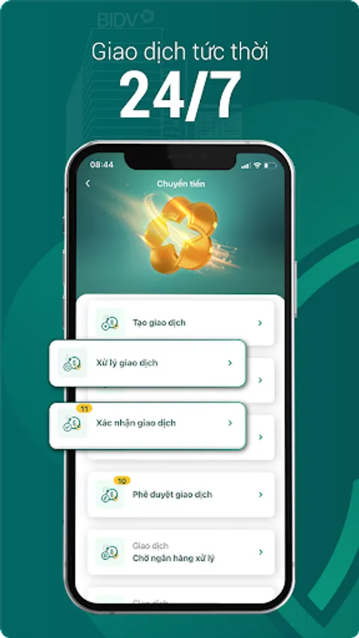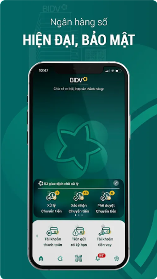 + Confirm/Approve transactions: Domestic money transfer, International money transfer, Salary payment, Term deposit, Bill payment, Periodic bill payment registration, Tracing, etc.