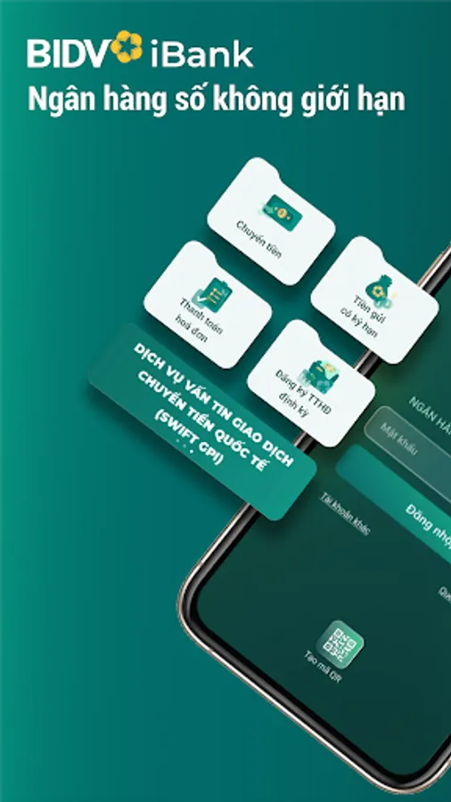+ Generate QR codes for all customers opening accounts at BIDV and scan QR codes for quick money transfer at millions of transaction points nationwide