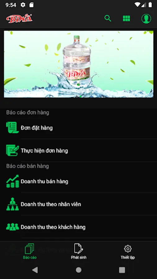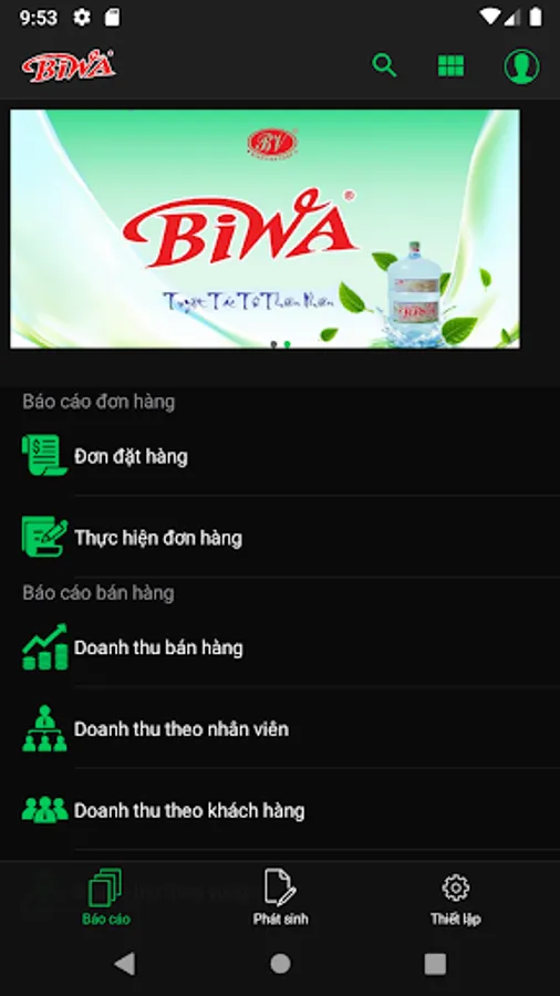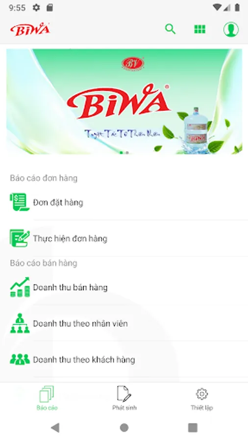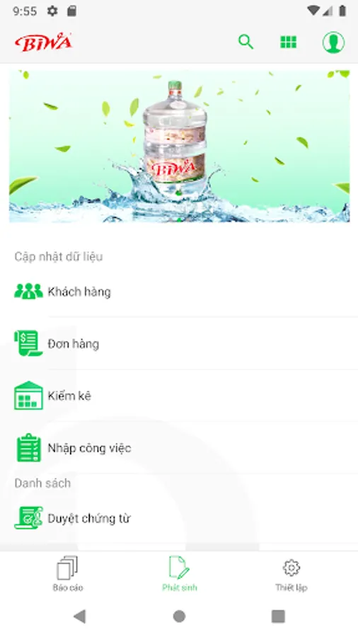 Biwa app is an application to view reports and order for Biwa mineral water brand of Binh Vinh Joint Stock Company with the following functions: