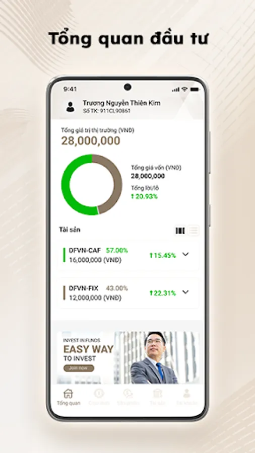 Quý Nhà đầu tư dễ dàng thực hiện mở tài khoản và giao dịch chứng chỉ quỹ thông qua giao diện đơn giản và dễ sử dụng nhằm tối ưu hóa trải nghiệm nhà đầu tư mới.