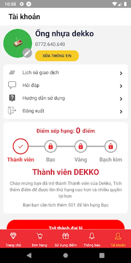 Besides, there are the preeminent features such as Earn Points - Redeem, Order online, Incentive incentives, will definitely bring customers many interesting experiences. Join us to learn more about the App DEKKO.