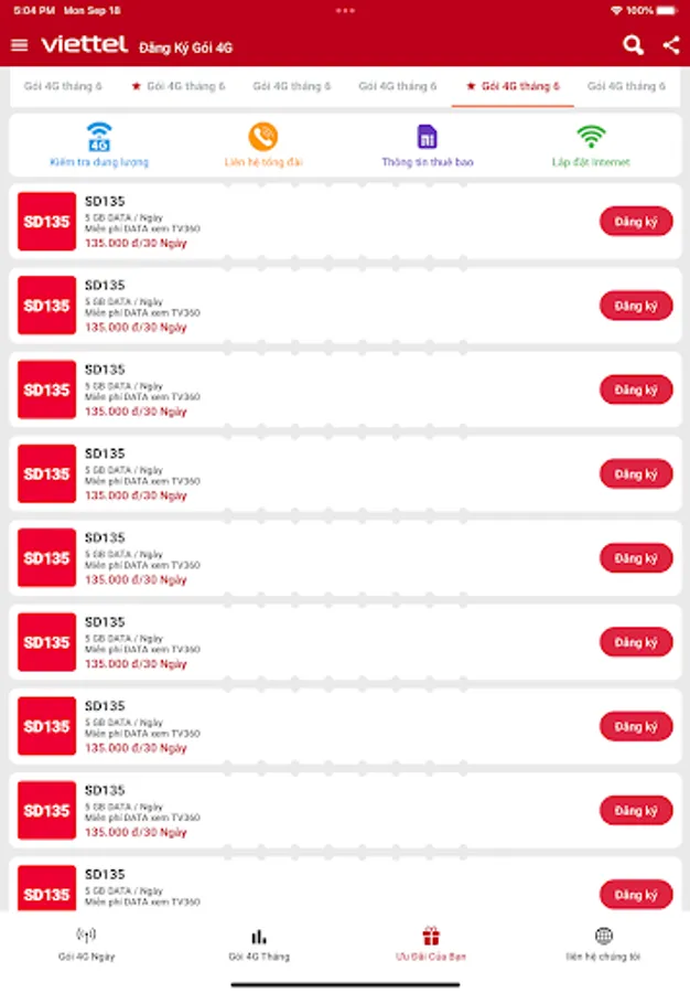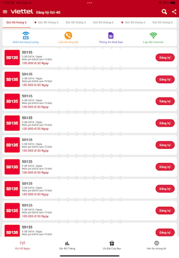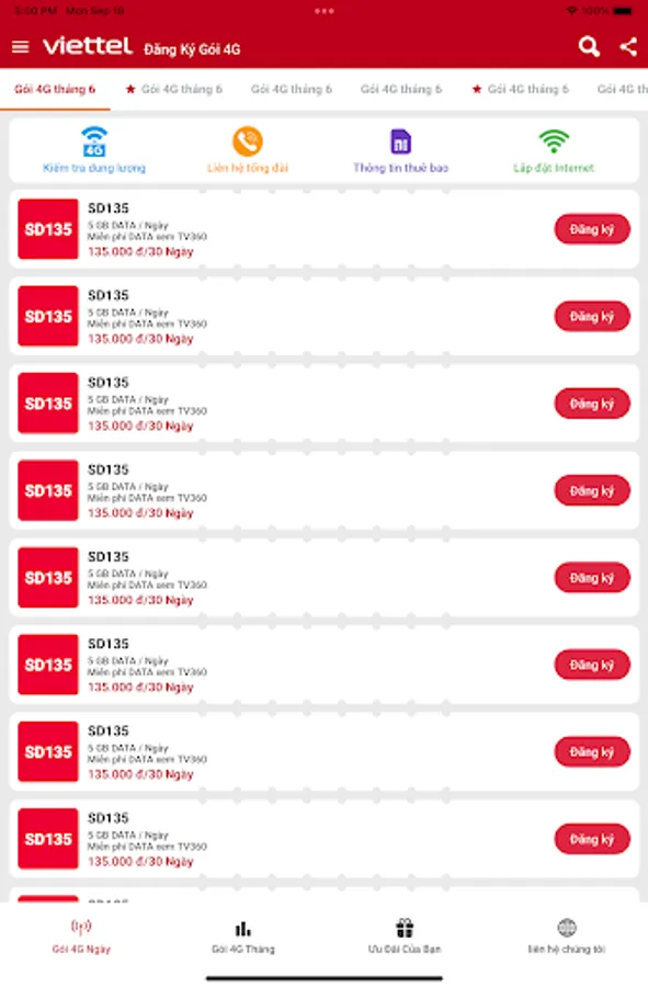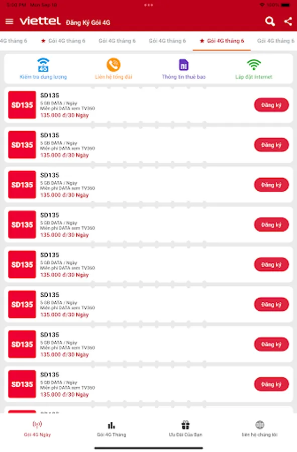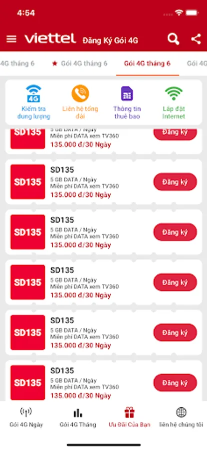 If you want to subscribe to one of Viettel's 4G packages, you can follow the instructions provided on their website. They have a range of plans with different fees and data amounts. For example, the SD135 package offers 5GB of data per day for 30 days for 135,000 VND. COMPOSE MESSAGE SD135 TIEN TO 9123